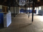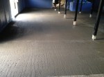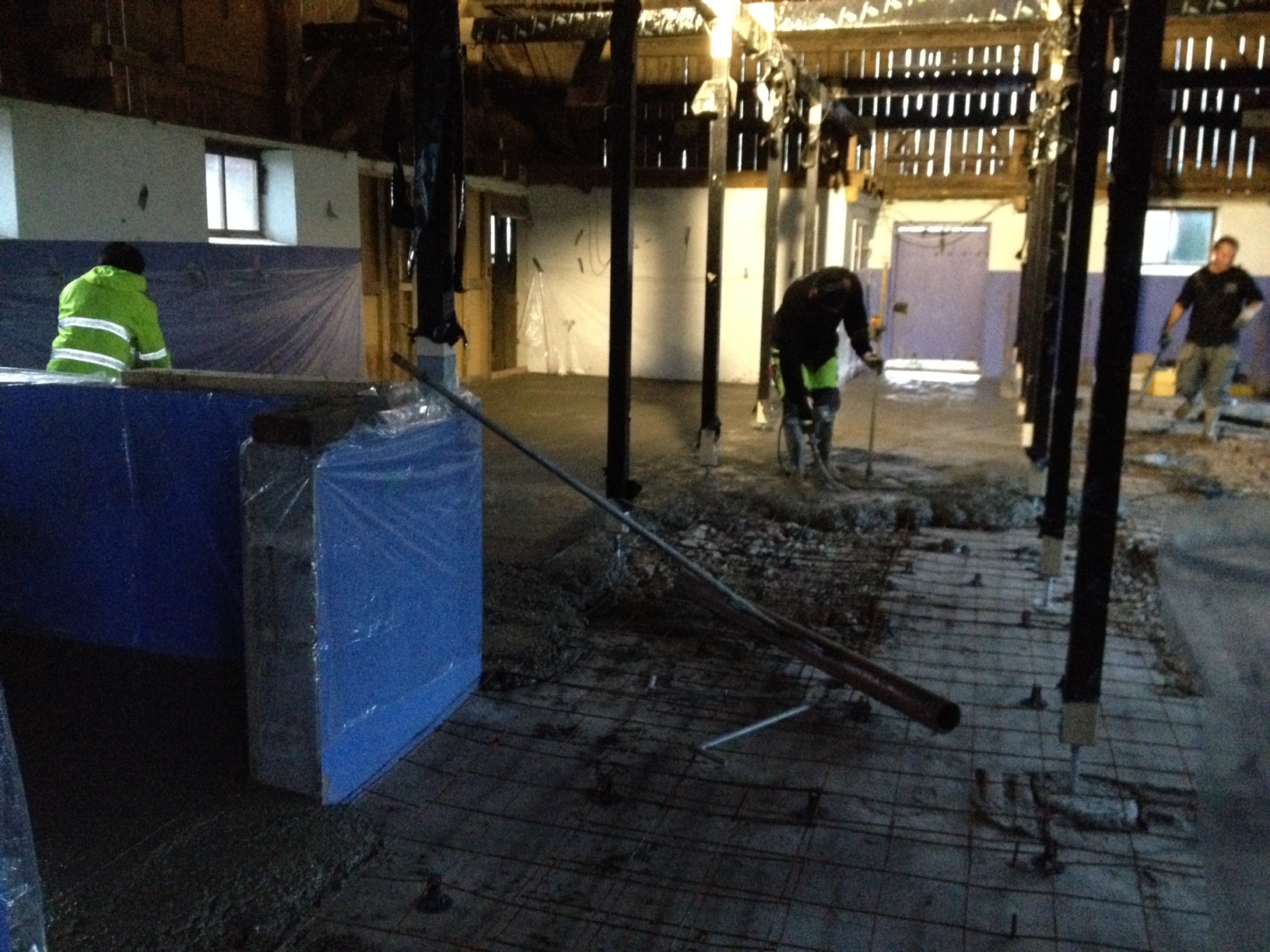 Redan vid åttatiden var halva stallet klart och betongbil nummer två bytte plats med den första bilen. Det går smidigt! Betongen var lite för trögflytande till en början men efter lite med tillsatsmedel gick det bättre.