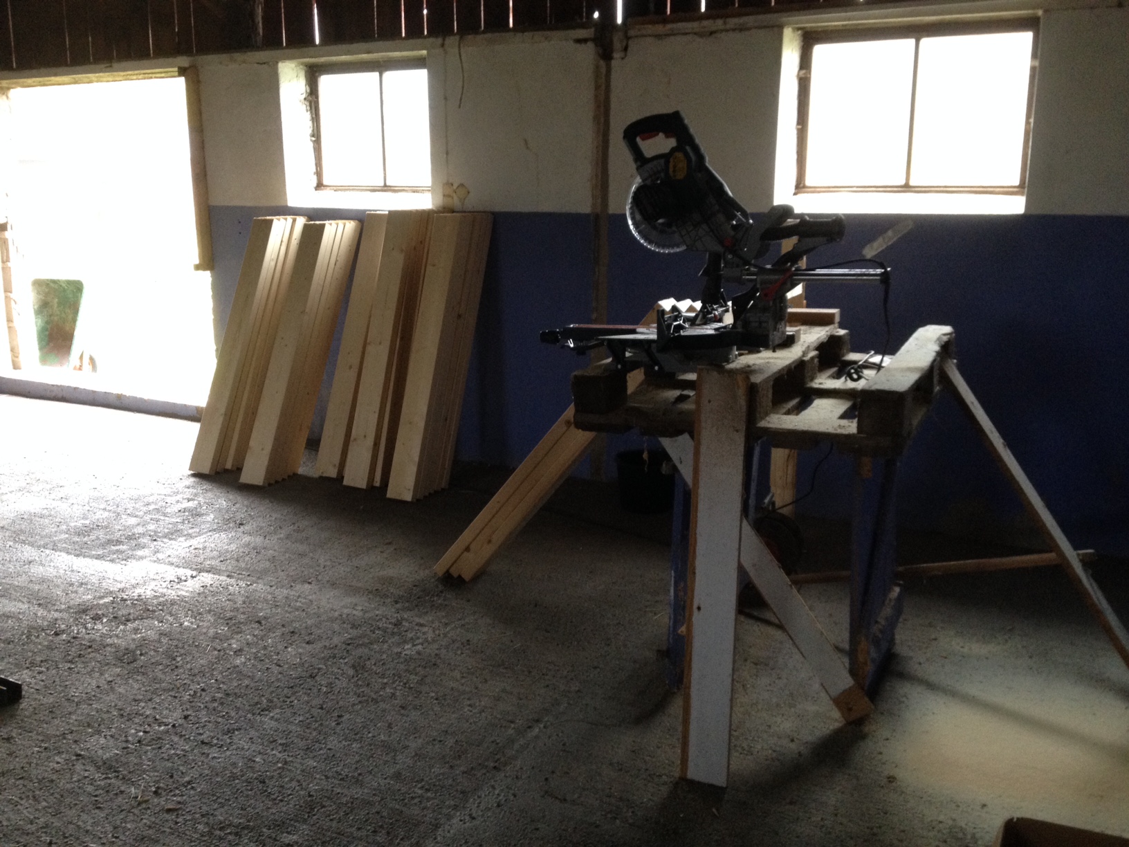 Vi har sågat alla brädor till ligghallen, det var det första vi började med i förmiddags. 103 stycken brädor närmare bestämt!