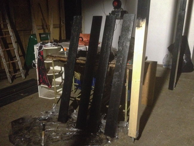 Jag har även skruvat upp några av de brädor som ska sitta på stolparna, de som är kvar här nedan behöver ”karvas” lite i innan de ska upp de också. Sen måste vi köpa några fler brädor, för det räckte ju inte till alla stolpar utan tre stolpar saknar brädor.