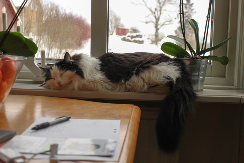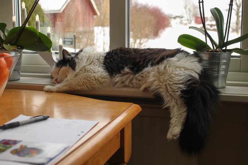 En lugn kväll utan större planer ligger framför oss. Klockan är sju och både jag och Axel har kommit hem från jobbet och Axel står för tillfället och lagar mat och jag har precis kört igång en tvättmaskin. Vi har båda ”shoppat” på vägen hem från jobbet och var därför lite sena hem. Axel stannade på Jula och köpte sex stycken gångjärn i modell stor till våra tre boxdörrar och han skulle även köpt ett element till sadelkammaren, men de var slut. Jag får kika på Jula i Borås i morgon och se om de har, nu när det ska bli ner mot 20 minusgrader senare i veckan känns vår frostvakt lite väl klen och vi vill inte att vattnet ska frysa, såklart.
