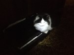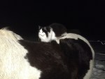 Jag fick sällskap i går kväll när jag skulle natta hästarna; Katla sprang glatt med ut. Han följde med in i stallet, drack ur hästarnas vattenkar och så fick han sitta på Alice en stund. Den här gången har jag bildbevis!