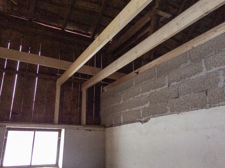 Vi började med att fixa två stöd till balkarna över ligghallen, de ska sättas ihop med balkarna på det här viset: