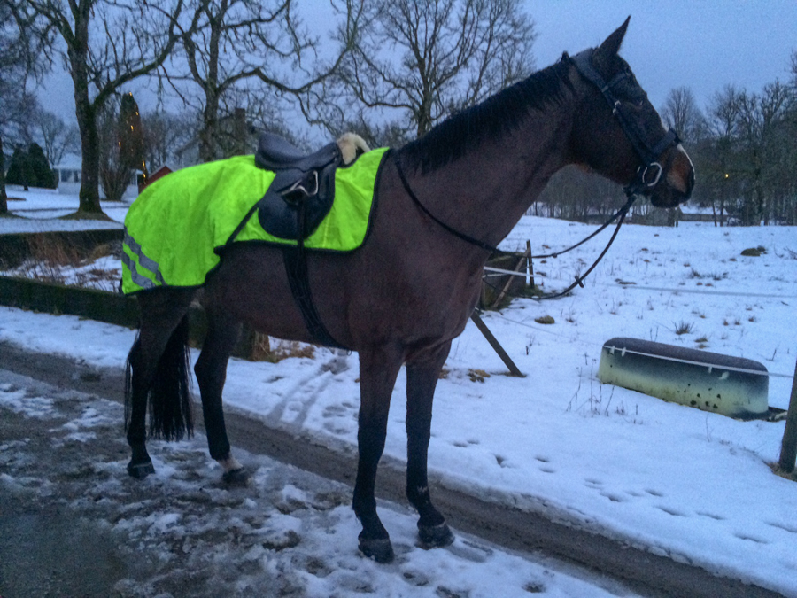 Då har vi avklarat årets första ridhusbesök och trots lite smärre käppar i hjulet blev det ett lyckat besök. Det började med att släpet inte riktigt ville komma ut ur sitt hus (isgata så bilen slirade mest) och sen när vi rullat en bit upptäckte jag att en broms låg på, vilket antagligen bidrog till att släpet var lite svårt att få ut. Bromsen släppte dock efter lite motion och vi kunde köra iväg. Lastningen gick okej och Kaprifol stod lite ostadigt i början men sen hörde vi inte av henne.