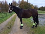 Idag blev det promenad för Kaprifols del, tillsammans med Rebecka och Simon. Vi gick rundan förbi badplatsen, 3.5 km ungefär så det blev ändå en rätt bra promenad. Kaprifol var glad och nöjd över att få röra på sig. Vi tog på lite reflexer, fast det var rätt ljust även när vi kom hem i alla fall. Jag köpte nya benreflexer senaste gången jag var på biltema och de var inte så dumma ändå faktiskt. De är större än de man brukar hitta och så är det ludd på insidan, haha. Bra kardborrefäste och bra reflex.