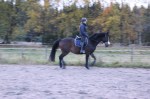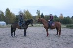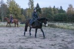 Det är ändå nåt speciellt med att rida i en tänd paddock omgiven av mörker där omvärlden blir liksom osynlig. Att jag och Rebecka klädde ut oss till två vandrande julgranar gjorde ju inte höstkänslan sämre precis!