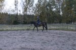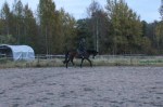 Vi skrittade upp till Skogs paddock och det är ju en bit, helt klart, men ändå värt det när man kommer fram tycker jag. Underlaget är bra, lamporna helt okej, staketet är stabilt och det känns liksom trevligt att vara där inne. Känslan i ridningen var okej idag, inte toppen, men okej. Kaprifol fick prova bett-tejp idag, och här skulle jag ju haft en beskrivande bild, men det är alltså en latexrulle som jag klippte i remsor och lindade runt bettet. Jag har noll erfarenhet av det sen tidigare men tydligen kan hästar med känsliga munnar gilla detta. Kaprifol var väldigt misstänksam mot det hela och tuggade frenetiskt när hon fick det i munnen, men slutade efter en stund. Den här stretigheten som hon får med bett fanns kvar, men jag tyckte nog ändå att det kanske kändes aningens bättre i själva ridningen i traven jämfört med bettet utan tejp. Jag ska inte förkasta det helt ännu, utan prova lite mer. Helst skulle jag nog egentligen vilja prova alla tre bett (vanligt, vanligt med bettejp och hackamore) under ett och samma ridpass för att kunna eliminera utomstående faktorer, och för att kunna jämför känslan bättre, haha. Nu tror jag egentligen att det blir ganska tydlig skillnad nu när jag rider lite mer igen och kan rida dressyr två dagar i rad till exempel och rida lite längre pass. Jaja, huvudbry minst sagt det här!