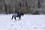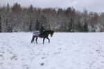 Vi munderade oss i reflexer och pannlampor, ingen kan nog påstå att vi inte syns i alla fall! Sen red vi rundan som vi döpt till Skogshagen, ett område man rider igenom efter halva vägen kallas nämligen just så. Den är ca 7km lång så det blev en ordentlig runda så här på kvällskvisten. Mest skritt såklart men vi lyckades även trava ett par längre sträckor och så tog vi en galopp i ett traktorspår rakt över ett stort gärde, sida vid sida galopperade vi lugnt och fint, hur härligt som helst!