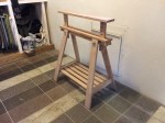Som ni kanske minns fyndade vi en bock i fyndhörnan på IKEA när jag och Axel var där för nån dryg vecka sen. Den kostade bara 199kr och såg ut att kunna passa himla bra i min sadelkammare! Vi har nu modifierat den lite = borrat några hål samt täljt två pinnar så att man kunde höja den lite och få en bättre arbetshöjd. Jag funderade på om jag skulle betsa den mörk också men just nu får den vara obehandlad, jag vet inte hur bra betsen fäster på detta lite finare/släta träet och det vore ju synd om betsen slets bort/färgade av sig på vita schabrak och sadlar mm 😉