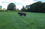 När jag åkte från jobbet idag öppnade sig himlen lagom till att jag satte mig i bilen ungefär och det regnade ordentligt där ett tag så jag började bli lite tveksam till om det skulle bli någon ridning idag. Lyckligtvis försvann regnet lagom till Fristad och efter det blev himlen bara blåare och blåare och väl hemma var det strålande solsken, även om den blöta marken vittnade om att det allt hade regnat här också.