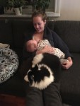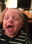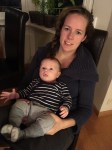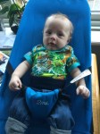 Vi var lite tidiga till besöket så jag och Loke satt ute i korridoren och väntade och spanade på människor som gick förbi vilket var väldigt spännande. En dam stannade och pratade lite också vilket Loke tycke var väldigt roligt och gav henne massa charmiga leenden. Detta och i samband med att han inte sov sin vanliga ”klockan 11-nap” var han trött när själva föräldragruppen startade, det tog nog tio minuter och sen somnade han i min famn och sov genom hela besöket (och fortsatte sova genom handling på ica, bilresa hem via Herrljunga, mockning av lösdriften, snabb dammsugning av övervåningen och sover fortfarande i skrivandes stund halv fem).