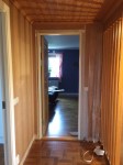 Efter dagens arbete är även all tapet nere i den övre delen av hallen. Det är ju samma tapet i trappan ner och i hallen på nedervåningen men vi stoppar här och gör denna biten först. Det är redan mycket ljusare och trevligare!