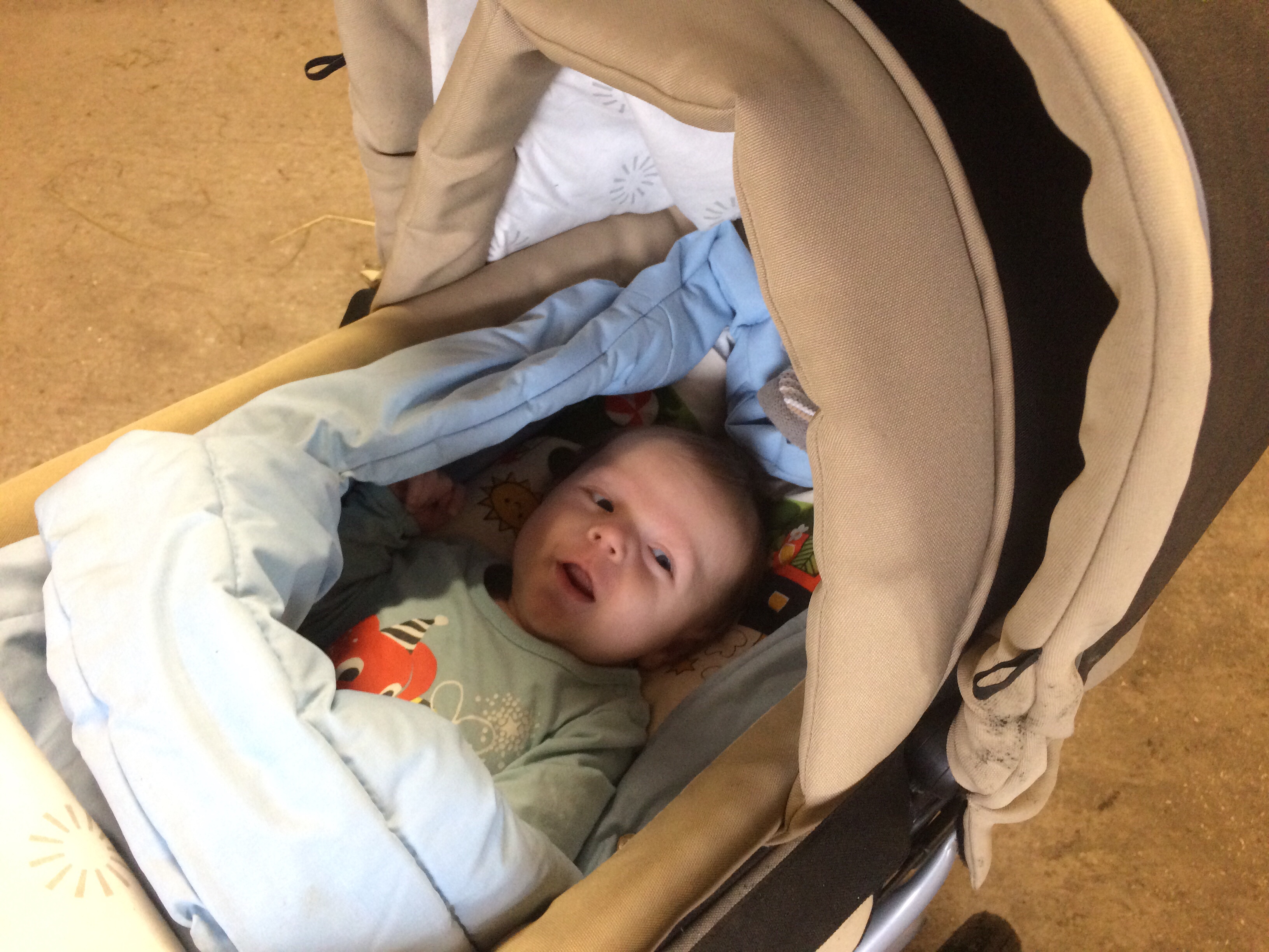 Ingen sömn där inte trots en ”insomningspromenad” med sällskap av Alice. Han var ganska glad i alla fall så jag hann borsta Alice och mocka ligghallen plus lite av grusplanen innan han tröttnade på att titta upp i stalltaket. Det blåste även rätt bra ute så det var ganska skönt att gå in.