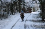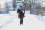 Vi inledde denna vackra vinterdag med en promenad; Axel gick med Loke i sele och jag red Kaprifol. Vi tog samma runda som vi gick igår eftermiddag, fast andra hållet och underlaget var riktigt bra. Kaprifol slapp bootsen och klarade sig hur fint som helst. Aningens halt på nåt ställe där snön var hård packad av mycket bilar, men annars hade hon bra fäste och inga snöstyltor får hon ju såklart.