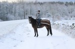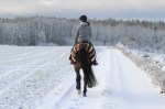 Kaprifol var PIGG idag, trots en ganska intensiv uteritt igår. Kanske var det snön som var extra skoj! Det blev mest skritt idag men jag travade och galopperade ett par gånger lite fram och tillbaka och in på sidovägar medan Axel gick i sitt tempo. Nyttigt det också, att gå lite fram och tillbaka och inte bara ha huvudet instället på snabbaste vägen hem 😉 Det blev omkring en 6-7 km i alla fall, och på slutet var hon lugn och avslappnad i både huvud och kropp!