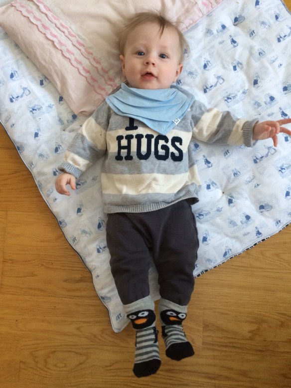 Därefter åkte vi till stugan där Axels föräldrar var, samt Kaj och Tilda. Vi åt middag och sov över där. Idag på förmiddagen har vi varit runt på inte mindre än tre ställen. Först träffade vi en kusin till Axel som precis fått barn (en månad sen) och sen en annan kusin (som inte är en kusin, men det är enklast så, hehe) De har en son som är exakt en månad yngre än Loke, fast man kan tro att de är lika gamla!