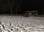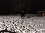Tänk att man kan bli så glad av ett brunt hårigt djur en snöig onsdagskväll! Axel var ute med Loke sovandes i vagnen samtidigt och rullade in en höbal till fåren. Han försökte ta nån bild också men mobilkamera+mörker är ju inte helt lysande, hehe. Nästa vecka kommer mamma ner så då ska jag stoppa kameran i hennes händer nån dag 😉