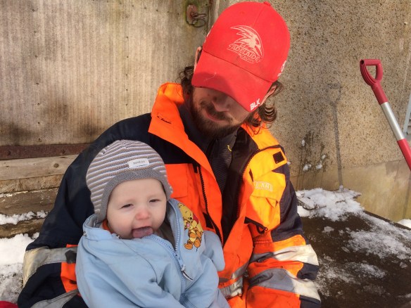 Tre ord som beskriver vår förmiddag! Första ordet innebär att Goliat har fått en ny startmotor och hoppade igång som om han vore tio år yngre! När vi skottat ut honom och plogen ur sina respektive hus (och lagat kopplingen som typ hoppade ur) kopplade vi ihop dem och Axel plogade en vända här hemma. Vi fick ju ännu mer snö igår samt att det töar så all snön från taken störtar ner och hamnar på vägen och i dörröppningar mm.