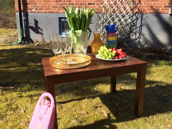 När hon slutade jobbet och kom hem var vi alla där och det blev champagnebrunch i solen.