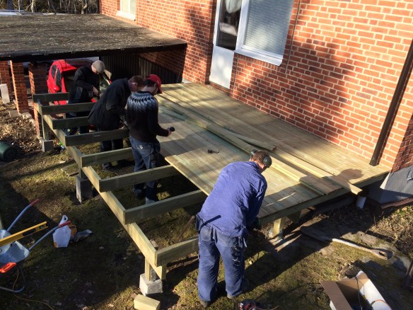 På söndag fyller mamma 60år så idag har vi syskon med respektive och alla barn åkt till Gullspång utan mammas vetskap. Vi anlände strax efter att hon gått till jobbet och drog igång med att bygga hennes födelsedagspresent; en altan.