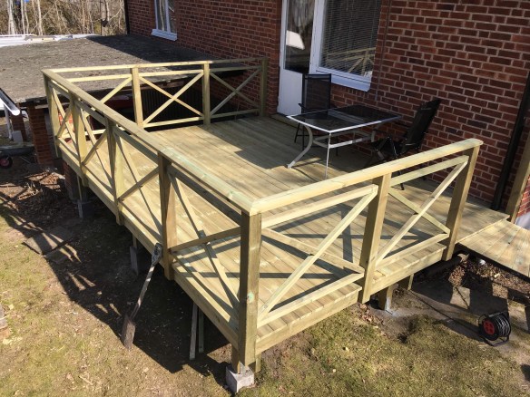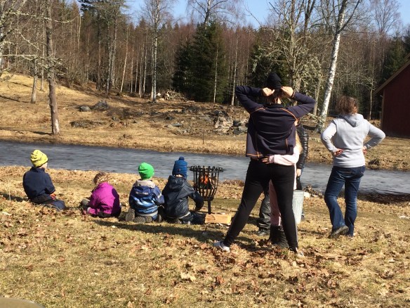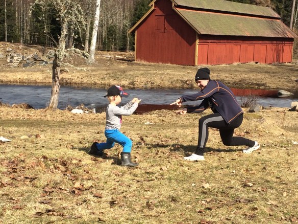Det blev aldrig någon hoppning tidigare i veckan så jag drog fram lite hinder i dag i stället! Det blev en serie på ena långsidan med två studs – ett galoppsprång – räcke med grind – ett galoppsprång – oxer. Kaprifol kändes lite småseg, men hoppade fint. Jag hoppade i vänster varv ett par gånger innan Axel hjälpte mig att bygga upp den sista oxern, och jag gjorde samma sak i slutet, men i övrigt blev det hoppning i höger varv.