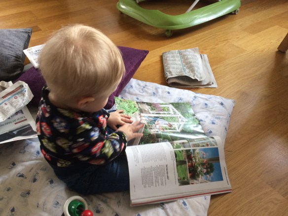 Väl hemma tog vi en promenad tillsammans med Axel. Loke somnade i vagnen och fortsatte även en stund efter att vi kommit tillbaka. Lite ogräsrensning blev det då, och även lite efter att Loke vaknat.