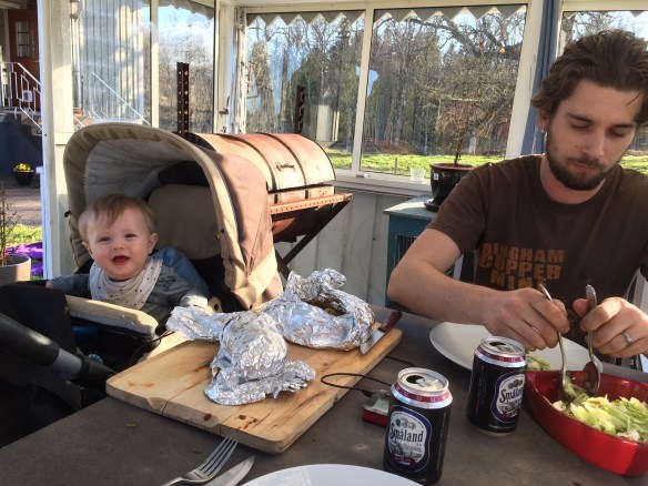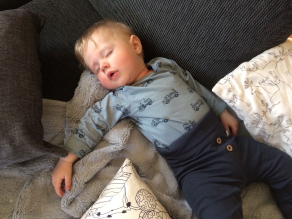 Vi åkte hemåt och där väntade pappa/morfar så vi lunchfikade tillsammans innan han åkte vidare och Loke lades för att ladda batterierna inför babysimmet.