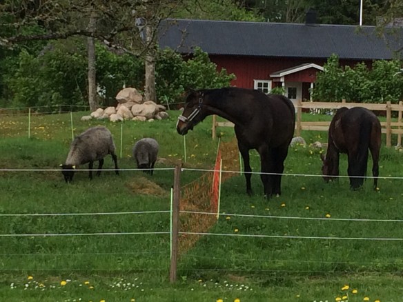 Ingen bild tog jag på huset dock, så det fick bli en Kaprifol i stället! Riktigt så mycket gräs är det inte i hagen dock, bara precis utanför paddocken 😉