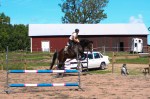Så blev det min tur på 70cm och jag visade Kaprifol ett par hinder inklusive ettan medan föregående ryttare hoppade klart. Sen satte vi fart och jag fick igång en helt okej galopp, det blev dock lite vingligt fram till ettan av någon anledning men hon hoppade fint. Glad i hågen galopperade vi vidare och fick ett stop på tvåan innan vi kom över. Hon typ stannade även på trean men jag fick henne att gå över den och sen tog vi oss över fyran innan vi stannade igen på femman, haha. De resterande tre hindren hoppade vi felfritt, och så var vi lyckligtvis i mål i alla fall.