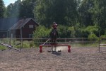 Idag har jag haft sällskap av Rebecka i stallet och hon lyckades vara barnvakt, hinderpersonal och fotograf på en och samma gång! Bommarna som jag travade över i måndags förvandlades till hinder och det blev en liten bana utav det hela. Kaprifol var lite småseg till en början men taggade till lite när vi skulle hoppa och var alldeles lagom pigg. Satsade lite på fel hinder, ruskade lite på huvudet efter nåt större språng och studsade lite när hönsen kacklade åt oss när vi galopperade förbi.