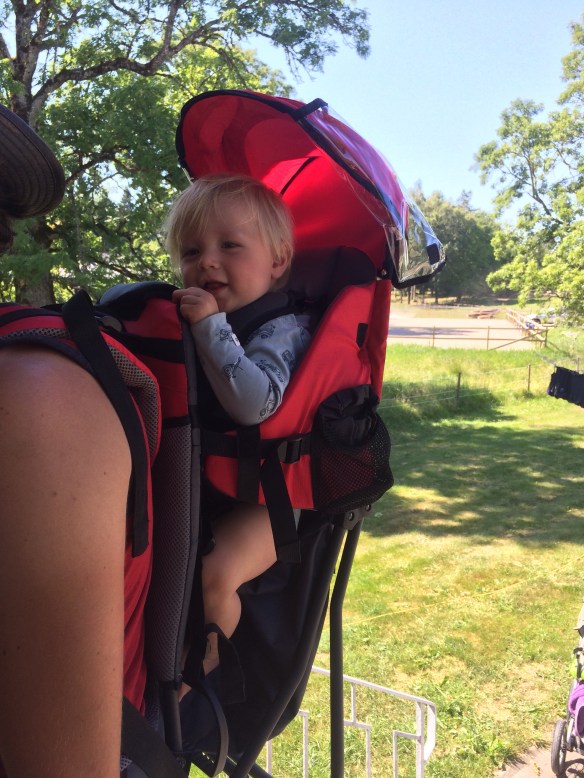 Vi har köpt en ryggsäcks-bärsele också som verkar himla bra och anpassad för lite längre turer jämfört med den vanliga selen. (Den vi fick låna av Axels föräldrar gick sönder av ålderdomliga skäl). Loke verkar gilla den, han sitter lite högre upp så han ser bra.