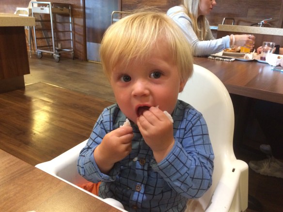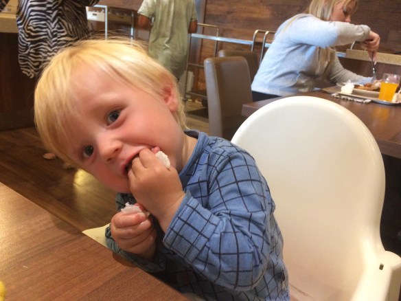 Axel och Loke plockade upp mig på jobbet i går eftermiddag och så satte vi kurs mot Gekås i Ullared. Ganska spontant, men man hittar ju alltid saker att köpa när man är där! Vi köpte bland annat underkläder, stängselmaterial, skor, örngott och fodertunna till fåren. Vi var även inne på jaktbutiken där Axel köpte en tröja och på Netonnet där vi köpte ett väggfäste till teven. Nästa steg i Barnsäkring av hus alltså. Efter all shopping åt vi mat på en av restaurangerna och Loke fick smaka på sådana där räkchips utöver lite ris, kyckling och ananas.