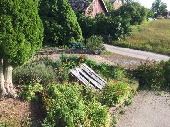 Vi har även grejat lite med hönsgården. Hönsen har fått gå lösa på gården nästan varje dag sen en vecka tillbaka och de sköter sig så fint så, och håller sig ganska nära sitt hus och går runt och snappar i sig insekter och gräs och frön och annat gott de kan tänkas hitta. På kvällen går dem in och sätter sig i sitt lilla hus och då stänger vi hönsgården så inte räven smiter in och äter upp dem under natten. Nu har vi fått upp en dörr till hönsgården också så det hela blir lite enklare!