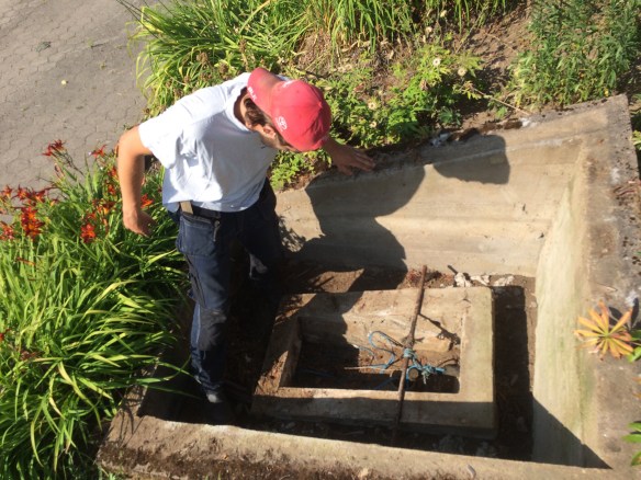 Vi har ju borrad brunn så det är inte så att det är ett hål ner i en vattenhåla under, men det ska ju ändå vara ett ordentligt lock över. Här är locket borttaget: