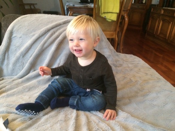 Han har lärt sig säga sitt namn också! Typ. ”Ko-ke”. Haha.
