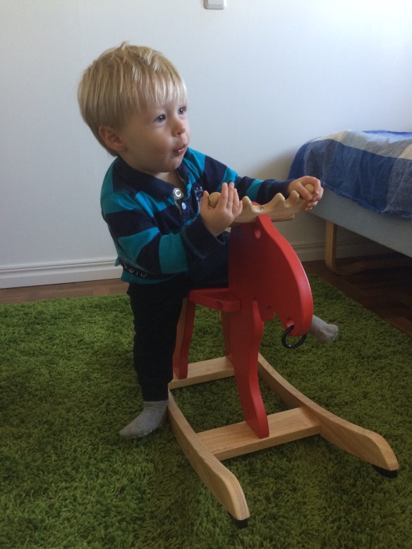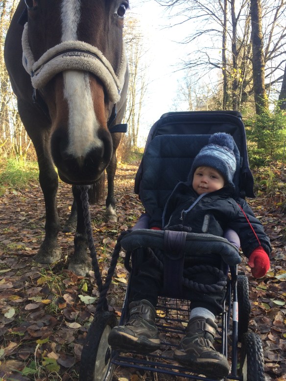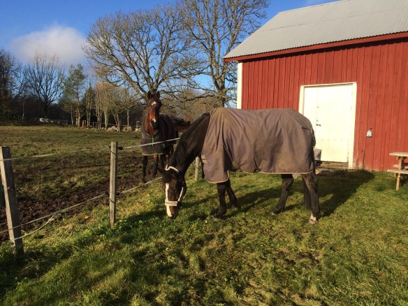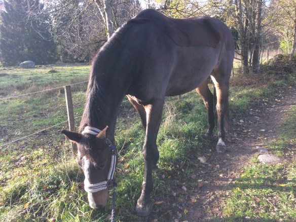 Loke somnade typ en minut efter att bilden togs och sov en stund efter att vi kom tillbaka till stallet så Kaprifol fick lite gräs och ompyssling.