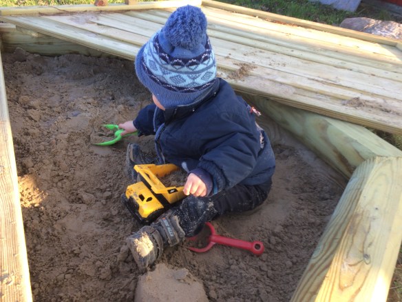 Och så gick vi ut igen och förflyttade lite sand och åkte lite tramp-traktor.