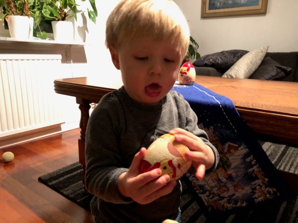 Här är lite ovisade bilder från de senaste dagarna. Hög koncentration med tungan rätt i mun när tomten ska ”pusslas” ihop.