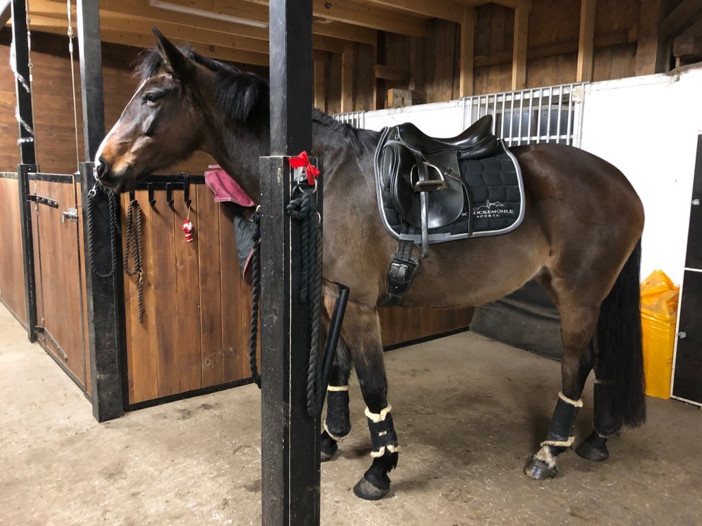 Och eftersom vi har en lampa över vår paddock lider jag inte så mycket av mörkret faktiskt, trots att jag oftast är ute i stallet efter halv åtta på kvällen. När jag rider ut är det pannlampa som gäller och även om jag inte direkt galopperar i full fart i lampans sken, så går det att rida ganska normalt även då, när underlaget tillåter såklart. Nu har vi haft ett par frusna dagar och vi hann inte med att salta paddocken innan så även den har varit frusen. Igår var snön bortsmält och banan var inte helt frusen så Kaprifol fick gå några varv där inne med mig på ryggen. Hon kändes fin