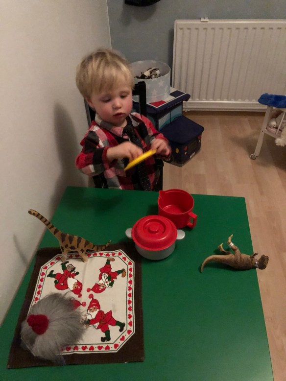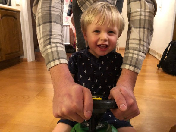 Loke var på sitt bästa humör hela dagen och lekte både med kusinerna och själv. Fanns ju såklart nån traktor att leka med och när man inte sett till honom på en stund kunde man hitta honom såhär: