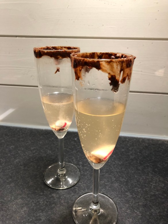 17.00 Vuxna: Rött vin! Barn: Marsipangrisar med fruktsmoothie till Loke
