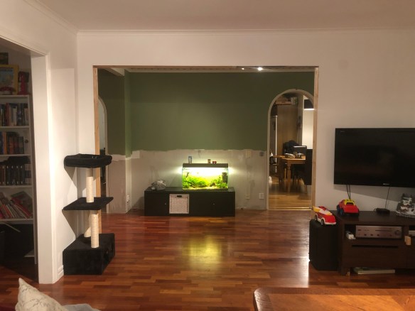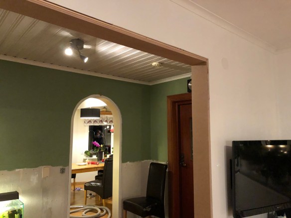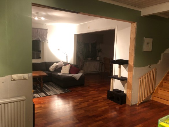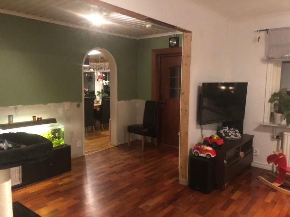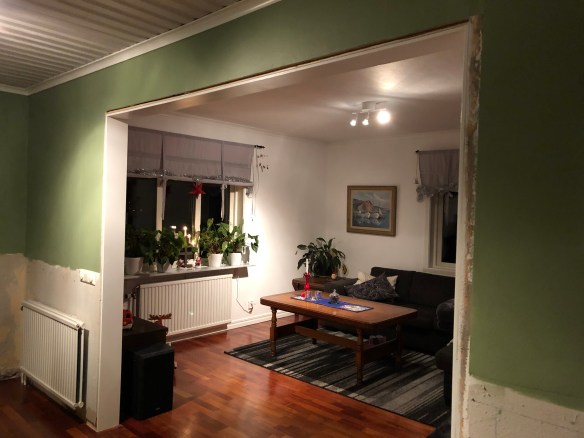 Första steget var att sätta ”foder” i öppningen mellan hallen och vardagsrummet.