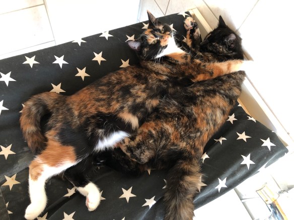 Nya t-shirten åkte på och efter frukost gick vi ut till alla djuren. Hönsen fick gårdagens matrens (morotsskal, kokt potatisskal och lite paprika) och så fick de komma ut såklart. Vid dessa lite mer humana temperaturer står de och trampar vid grinden när jag kommer runt hörnet, de vill ut! Huset blev städat och äggen plockade. De har börjat värpa mer igen också, nu hämtade vi aldrig äggen igår men sex ägg fick vi idag så det är gissningsvis tre hönor som värper.