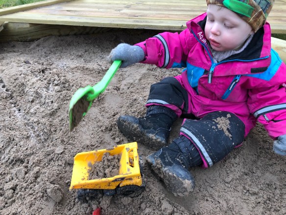 Vi hann leka lite i sandlådan också innan Susanne och barnen kom.