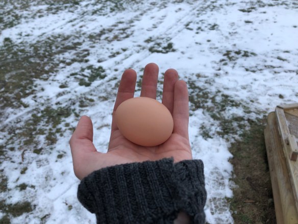 Loke ville leka i sandlådan men vi skulle ju vidare direkt efter morgonsysslorna så det får bli en annan dag. Fåren fick mat och hönsen släpptes ut. Ett varmt ägg fick jag också!