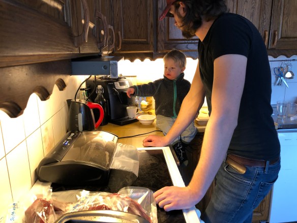 När vi kom in var Axel precis klar med styckningen och skulle vacuumpacka.