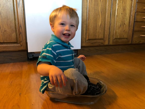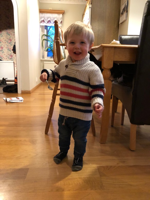 Igår var det lördag och Loke sov till kvart över sju ungefär. Axel fick ligga kvar så jag tog med mig Loke till nedervåningen.