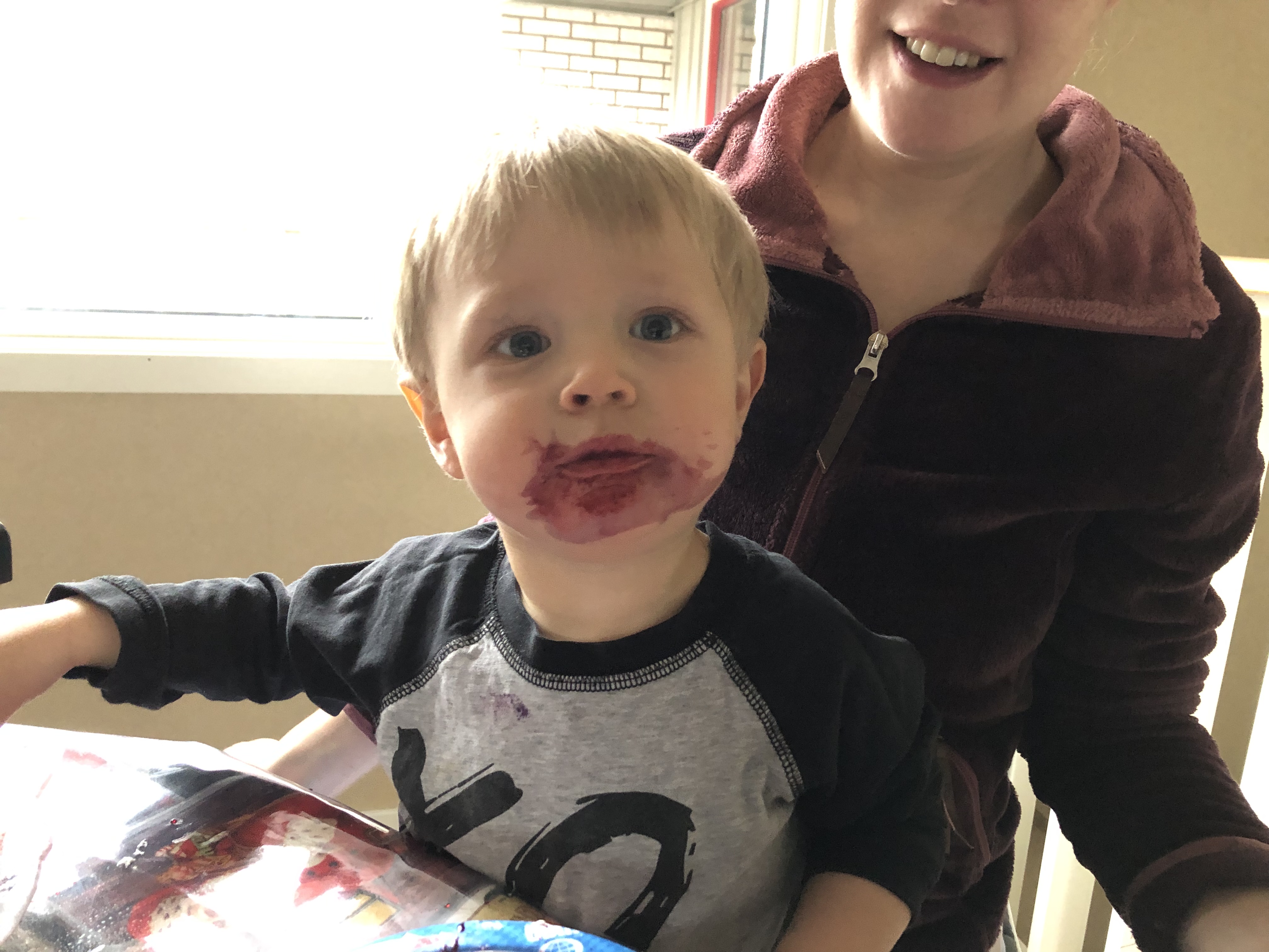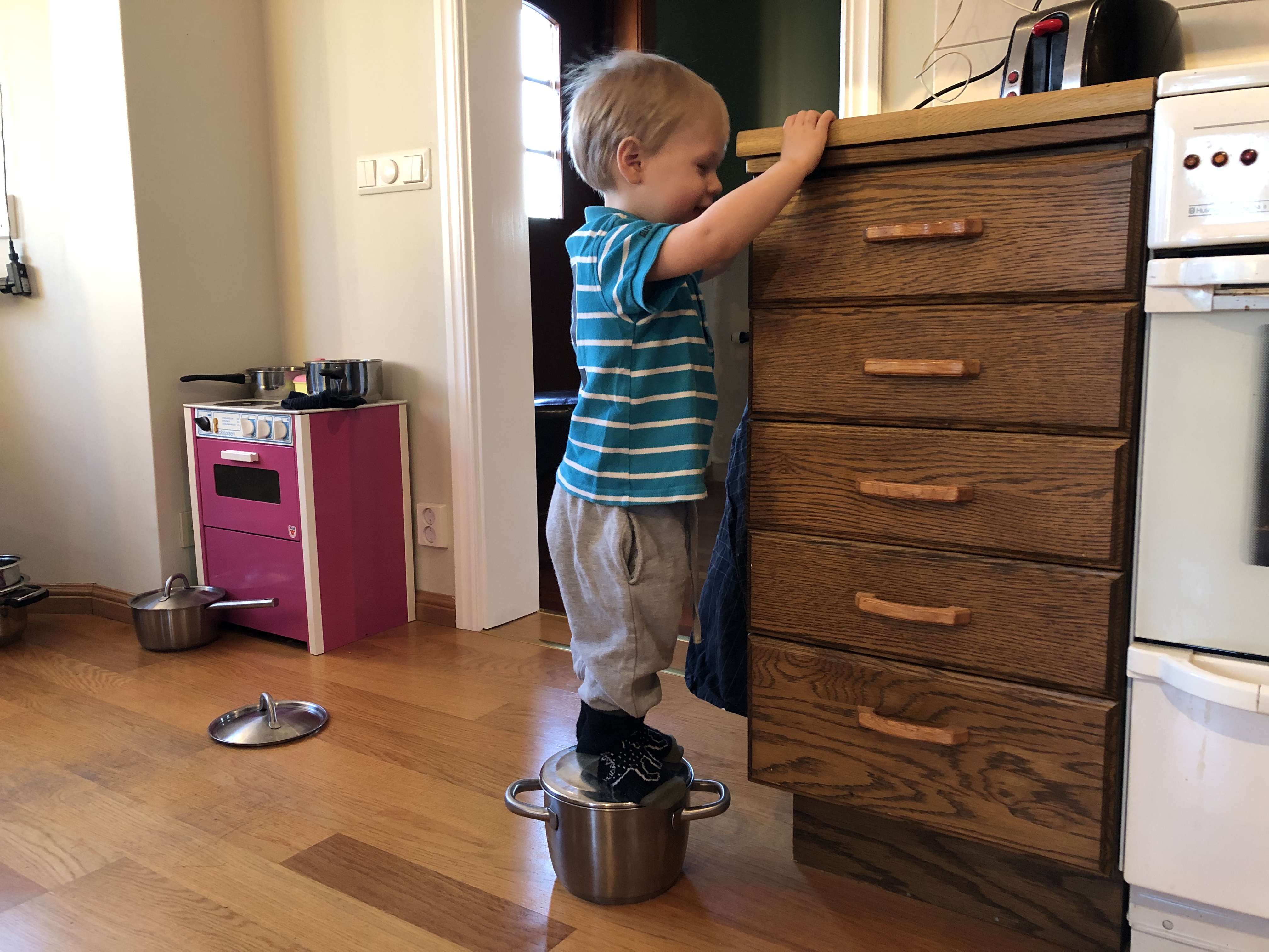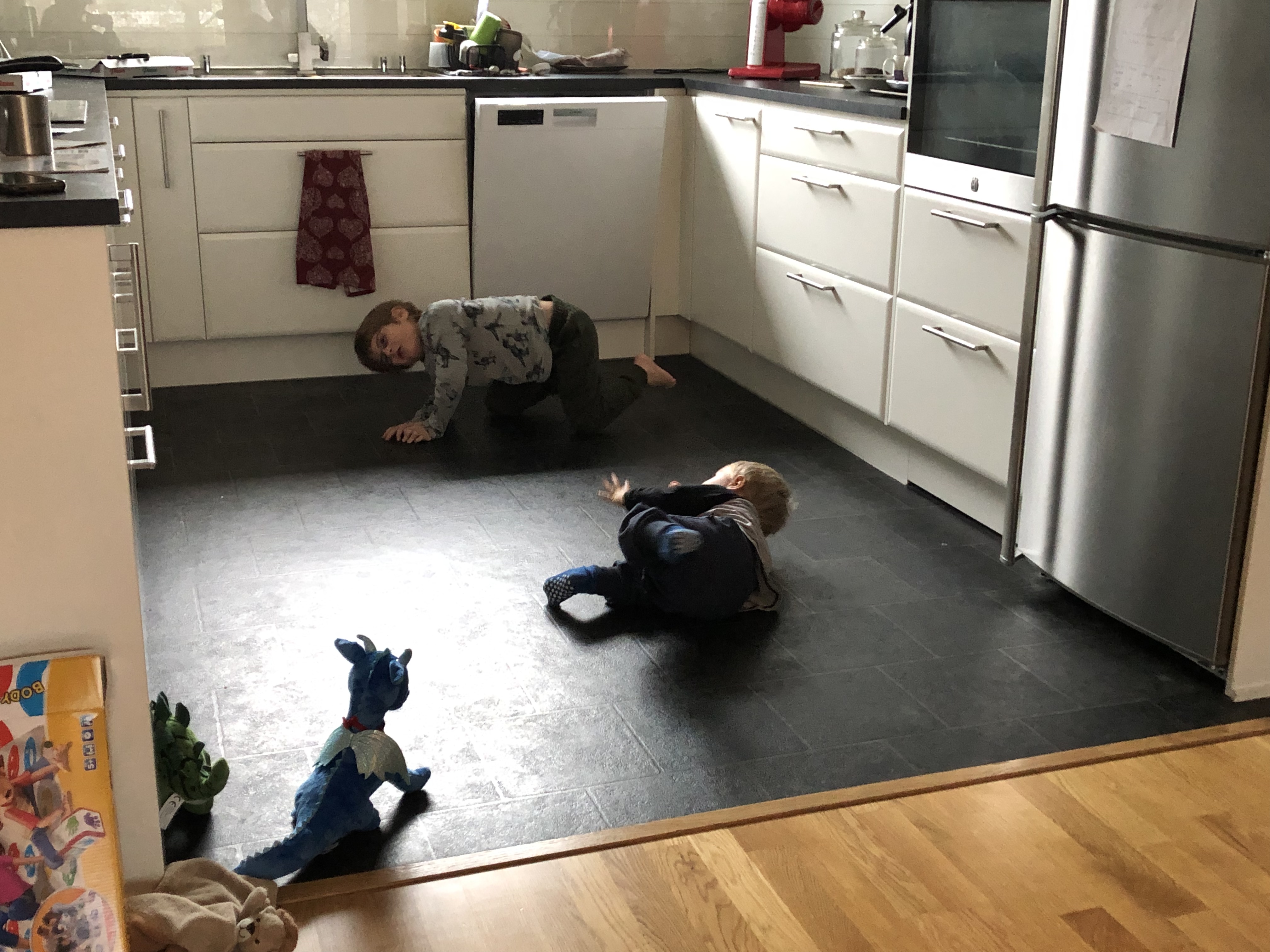 Igår var det lördag och Loke sov till kvart över sju ungefär. Axel fick ligga kvar så jag tog med mig Loke till nedervåningen.