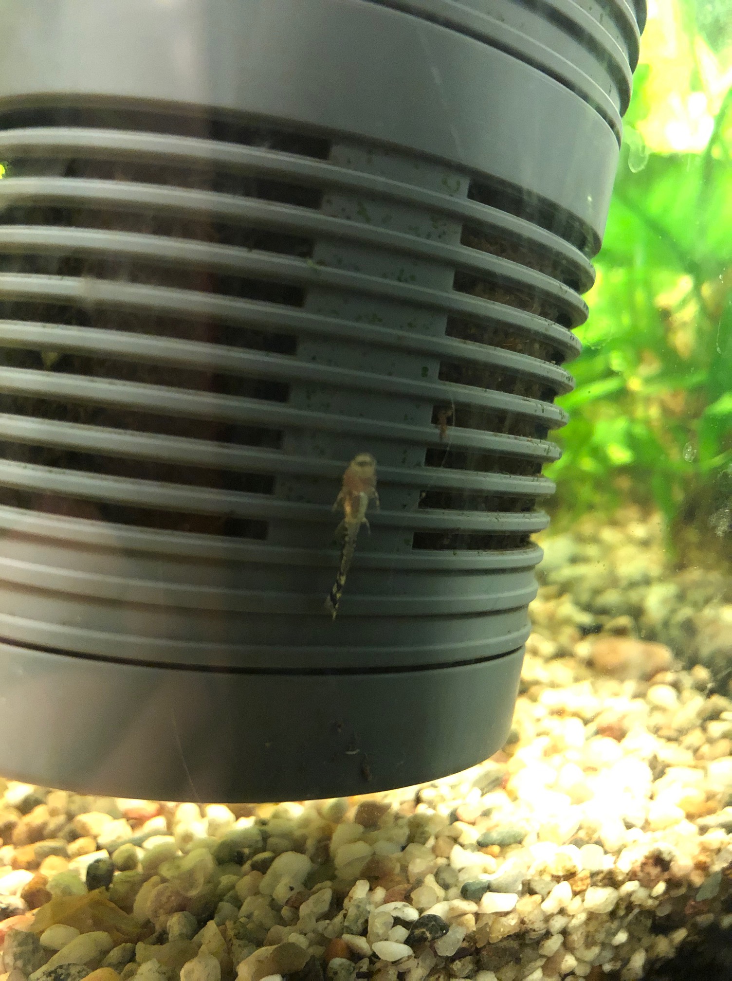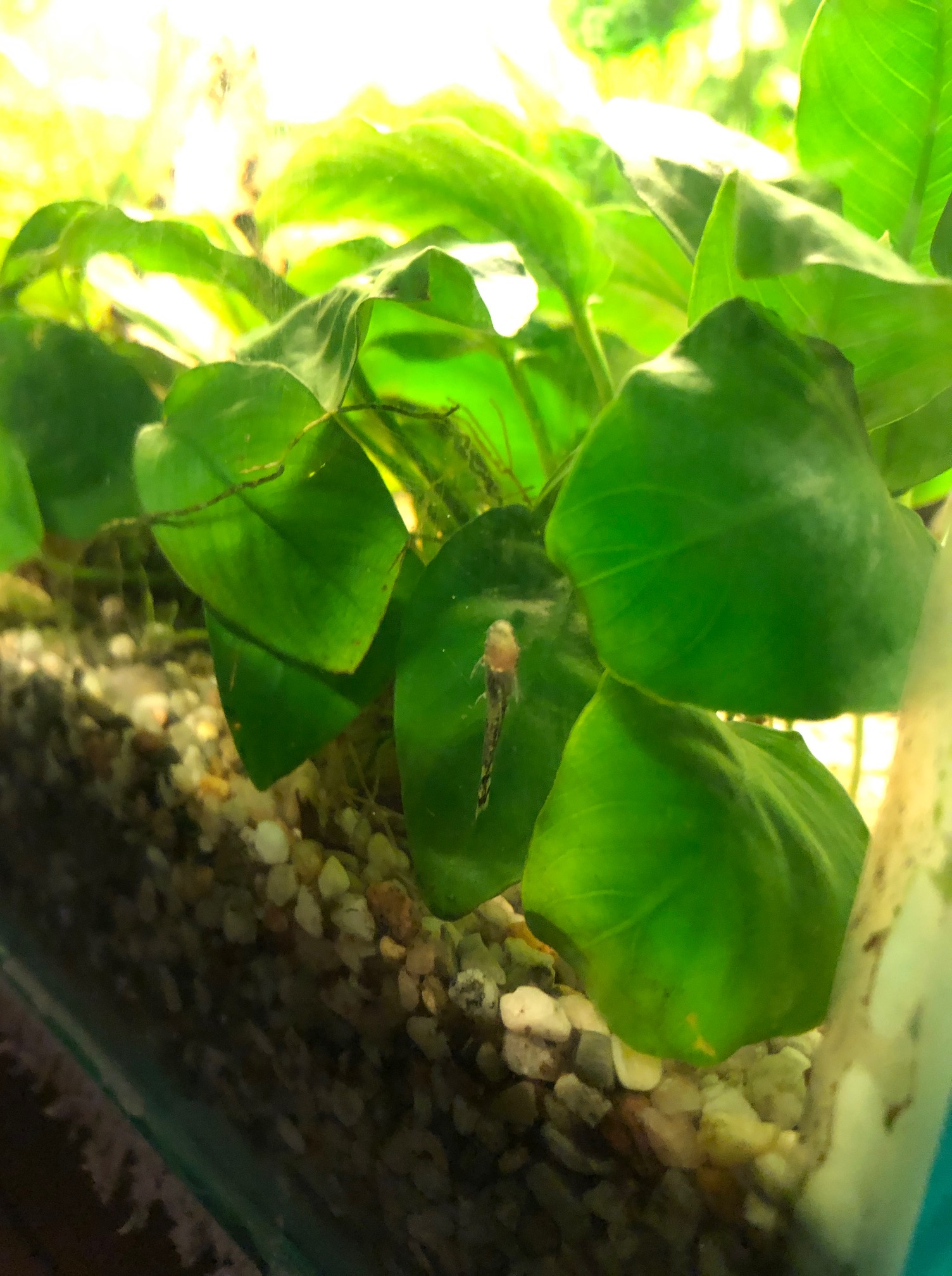Jag vet inte om jag berättade det, men min syster avvecklade sitt akvarium för ett tag sen (veckor, månader?) och då fick vi deras växter och deras dammsugare/mal. Vi hade en mal sen tidigare men tänkte att de nog kunde samsas om algerna, och nu visar det sig att de mer än samsas!