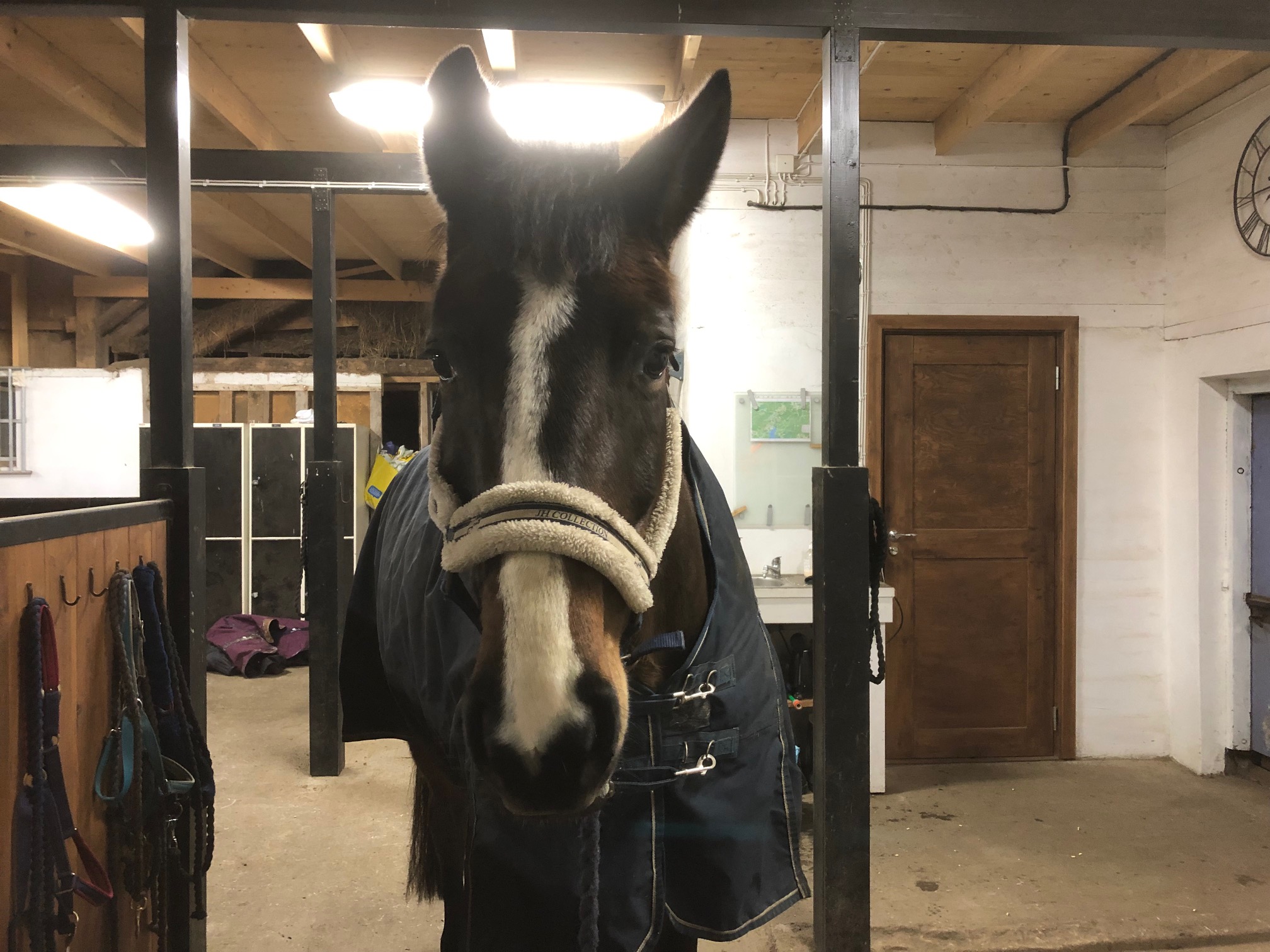 Jag var ute i stallet medan Axel lagade middag. Kaprifols ben kändes lite mindre svullet idag och blev ytterligare lite bättre efter en kort promenad så det är nog på väg åt rätt håll. Jag tvättade rent det ordentligt även idag och satte på lite sårspray för att hålla såret lite rent.