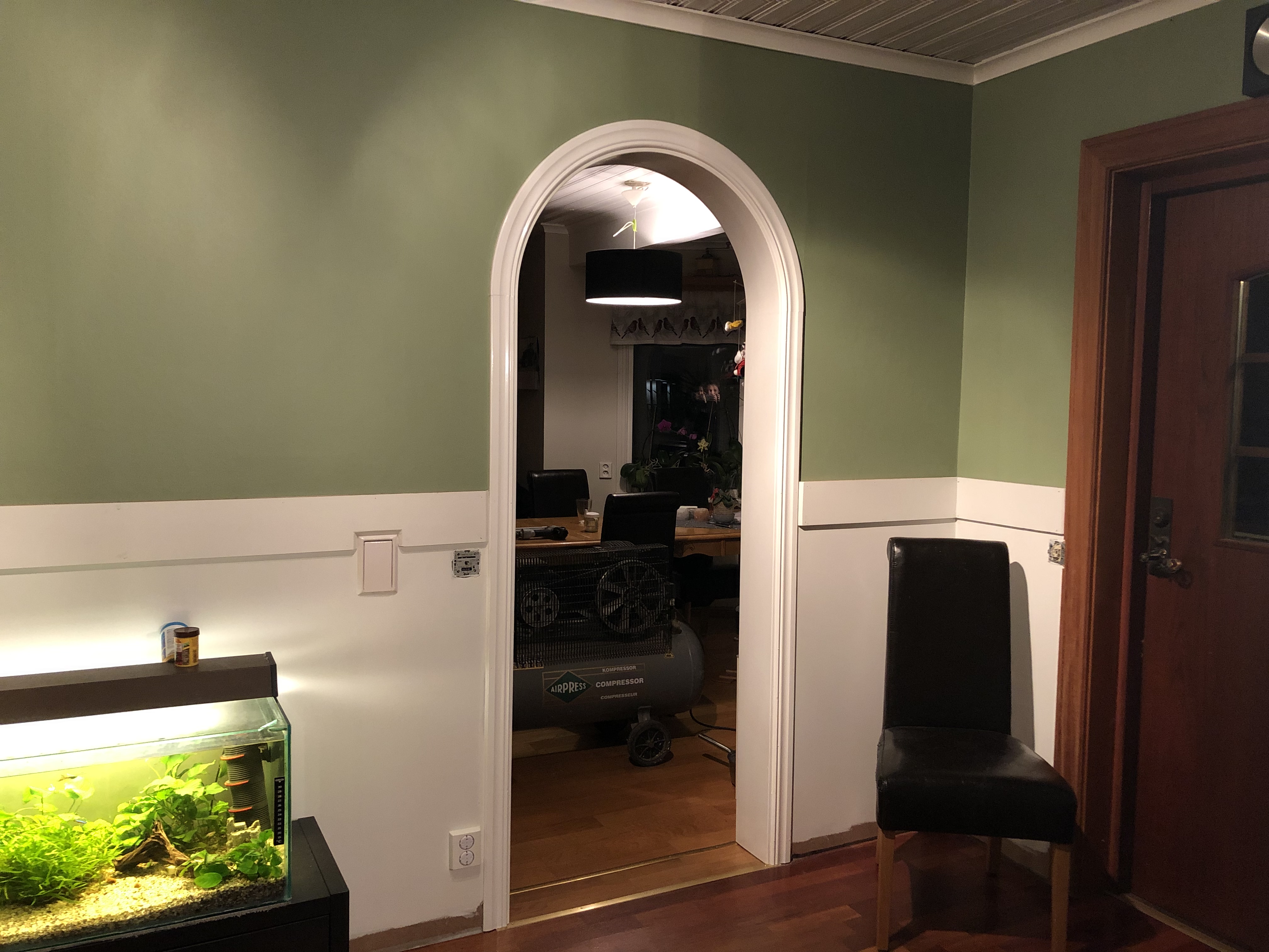 I går kväll kom den övre skivan upp på väggen från källartrappan till ytterdörren och det blir himla fint!